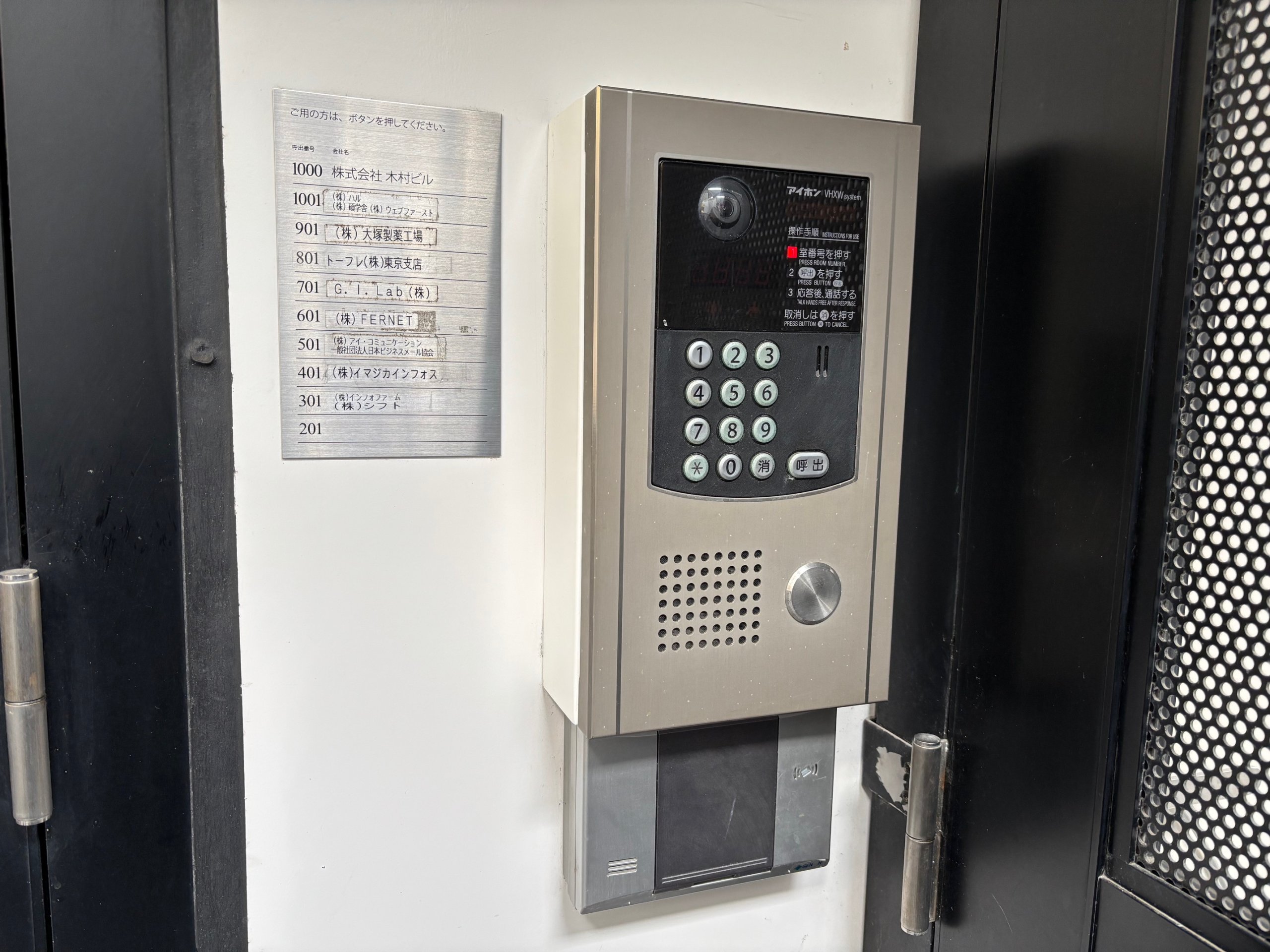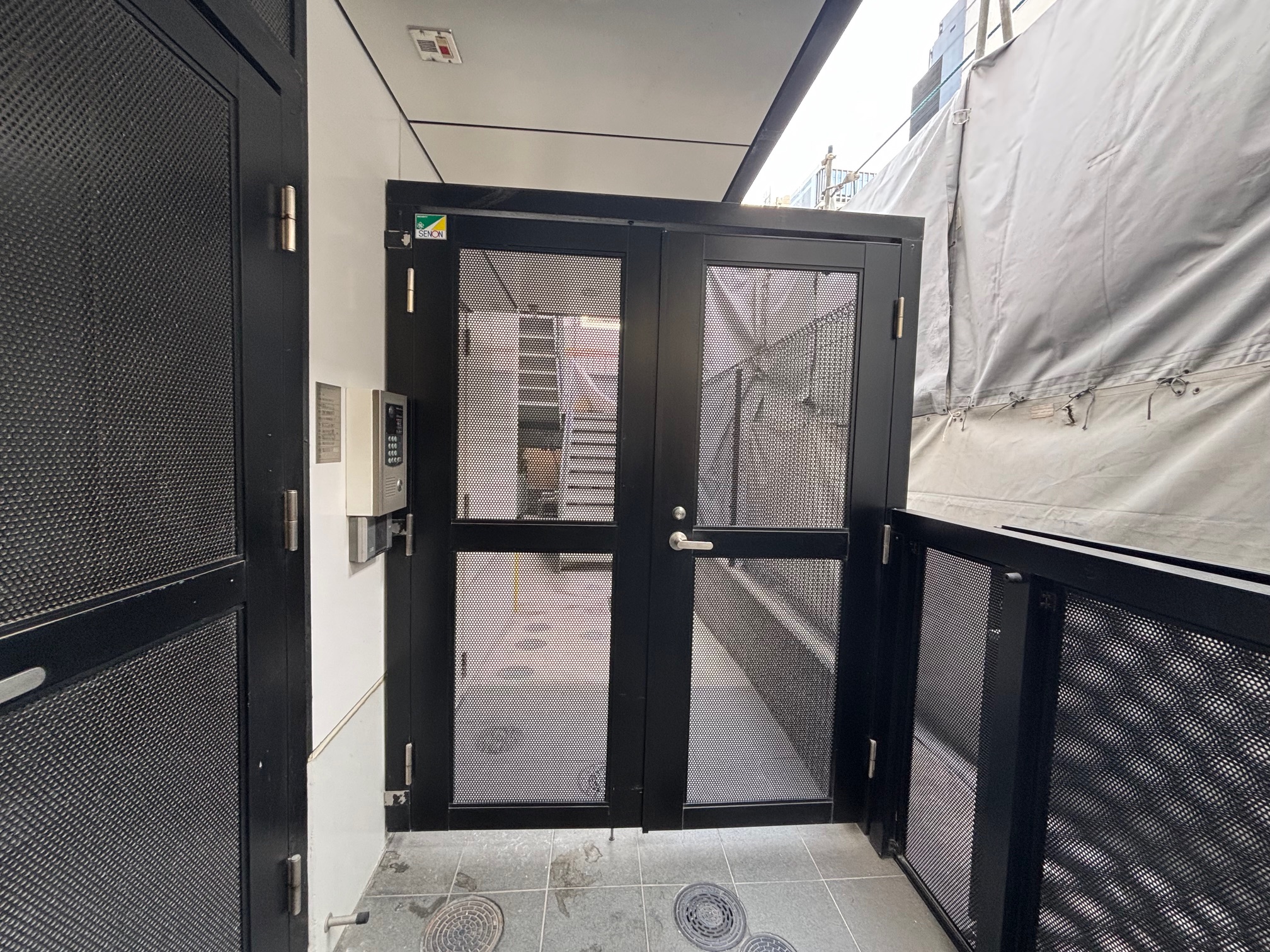 | (4)ビル内に入室 施錠のロックが外れたら背の高い黒い扉を開けて中にお進みください。 |